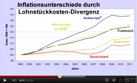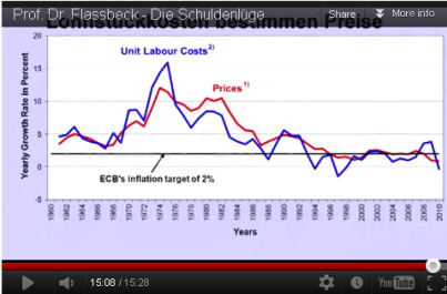 ![]() 03.07.2012 20:30 Heiner Flassbeck über Empirie und wie einfache volkwirtschaftliche Zusammenhänge missachtet werden “Wir verstehen die einfachsten Sachen nicht mehr mehr, weil uns seit 30 Jahren das Hirn gewaschen wird”, so Flassbeck. Es ist aber auch mehr, denn der Glaube ist für die, die ihn predigen und entsprechende Maßnahmen fordern und umsetzen auch ein lukratives Geschäft. Wo wären denn Ökonomen, Politiker und Berater, wenn der unproduktivste aller volkswirtschaftlichen Sektoren, die Finanzwirtschaft, über Nacht verschwinden würde? [Quelle: tautenhahn.blog.de] JWD In einem interessanten 15-Minuten-Video erklärt Heiner Flassbeck* schlüssig wie wenig die Krise verstanden wird. Und wie wenig echtes Interesse daran besteht grundlegende Zusammenhänge verstehen zu wollen. Getreu dem Motto - es kann nicht war sein, was nicht war sein darf - wird von den etablierten Ökonomen an wirtschaftspolitischen Dogmen festgehalten, die nachweislich falsch sind. Alleine dadurch, dass die EZB Kredite nicht direkt an die Staaten gibt, wird den Banken leistungslos jährlich 150 Milliarden Euro in die Kassen gespült. Mit nur einer Milliarde könnte Hartz IV auf ein menschenwürdigen Niveau angehoben werden, was sich nebenbei auch positiv auf den Konsum auswirken würde. Die Währungsunion kann nicht funktionieren, solange sich nicht jedes einzelne Mitgliedsland an die Inflationsvorgabe von derzeit 2% hält. Überschreitung ist genauso schädlich wie ständiges Unterschreiten. Wenn lediglich der Durchschnittswert aller Länder dem Kriterium entspricht, einzelne Länder jedoch über- oder unterschreiten, kann dass System sich nicht regulieren und es kommt genau zu den Problemen, wie sie sich über die Jahre in der Währungsunion aufgetürmt haben. Wichtige Grundannahmen der herrschenden Ökonomie sind auch empirisch falsch! Das will aber niemand wirklich wissen. Das Gerede von Geld und Inflation sei ebenso schwachsinnig, wie das Gerede über den flexiblen Arbeitsmarkt und die Flexibilität der Löhne nach unten. Als einen Beweis seiner Feststellungen führt Flassbleck den parallelen Verlauf von Lohnstückkosten und Preisen an. Diese Kenngrößen wurden weltweit von ihm für die letzten 50 Jahren zusammen getragen. Die ganze dogmatische, neoliberale Angebotstheorie ist damit widerlegt. Lohnstückkosten und Preise entwickeln sich gleich