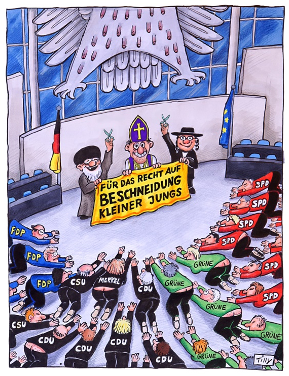 Es war leider nicht anders zu erwarten: Die Bundestagsabgeordneten haben mehrheitlich einem von CDU/CSU, SPD und FDP eingebrachten Entschließungsantrag zugestimmt, mit dem die Bundesregierung beauftragt wird, gesetzliche Regelungen zu schaffen, die die religiös motivierte Vorhautbeschneidung minderjähriger Jungen in Deutschland erlaubt.