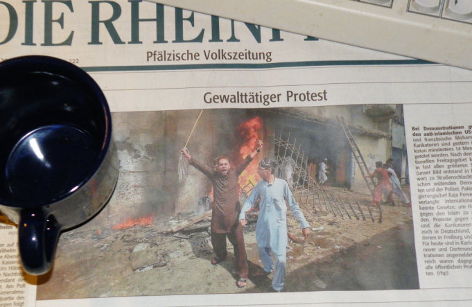 ![]() 22.09.2012 11:15 Blutrünstige, zerstörungswütige Religioten ziehen mordend durch die Strassen Pakistan - Hirnverbrannte Mutanten menschlicher Spezis haben nach dem traditionellen Freitagsgebet in Pakistan mindestes 14 Menschen getötet. Der offensichtlich religiös aufgehetzte Mob lieferte sich Straßenschlachten mit der Polizei, steckte Häuser in Brand und mordete Menschen. JWD Die Begründung für dieses Handeln ist einfach lächerlich. Der Prophet Mohamed soll durch einen in den USA gedrehten Film beleidigt worden sein! Außerdem hat ein französisches Magazin Karikaturen von Mohamed veröffentlicht. Wenn dass kein Grund ist, Menschen zu ermorden, die höchstwahrscheinlich noch nicht einmal weder den Filmemacher in Amerika, noch den Redakteur in Frankreich kannten, bzw. nicht die geringste Verbindung zu den vorgegebenen Ursachen hatten. Absurder geht es kaum!!!!!! Solch minderbemittelte Idioten und Mörder haben in zivilisierten Gesellschaften einfach nichts zu suchen und müssten notfalls weggesperrt werden! Es wäre ein Armutszeugnis für alle fortschrittlichen Menschen, würden sie solch fundamentalistischen Fanatikern Zugeständnisse machen, oder gar so etwas wie Bestandsschutz gewähren. Jede Freiheit, auch jede religiöse Freiheit, muss dort enden, wo die Freiheit eines Anderen eingeschränkt wird!!! ![]() zum Thema: Telepolis 22.09.2012 Lebende Mohammedkarikaturen - Das Paradoxon des gewaltsamen Protests zur Ehrenrettung Mohammed ist nicht nur der häufigste Vorname auf der Welt – er dürfte es auch unter jenen Salafisten sein, die seit eineinhalb Wochen vor Botschaften, Konsulaten, Presseclubs und anderen Einrichtungen wüten. Gestern waren davon in besonderer Weise die pakistanischen Städte Peschawar, Karatschi und Islamabad betroffen, wo unter anderem Kinos abgefackelt wurden und mindestens 16 Menschen am von der Regierung ausgerufenen "Tag der Liebe für den Propheten" ums Leben kamen. Dabei geben die kreischenden Brandstifter und Mörder ein Bild ab, das jenen in den von ihnen als Anlass für ihre Handlungen genannten Filme und Zeichnungen bemerkenswert ähnlich ist. Zumindest die Mohammeds unter ihnen sind also lebende Mohammedkarikaturen und beleidigen mit ihrem Verhalten gerade jenen Namenspatron, dessen Ehre sie zu schützen vorgeben. [..] [Quelle: heise.de / Peter Mühlbauer] Link zum vollständigen Artikel bei ' heise.de ' ..hier Artikel vom 18.09.2012 Kunstfreiheit gilt auch für schlechte Filme Oberwesel - Der Vorstand der Giordano-Bruno-Stiftung hat sich im Streit um den Mohammed-Film zu Wort gemeldet und ist der Auffassung, dass ein öffentliches Aufführungsverbot des Filmes gegen das Gebot der Kunstfreiheit verstieße. [Quelle: hpd.de] JWD ..mehr Sudan: Deutsche Botschaft abgefackelt! Westerwelle meckert: 'Mohammed Video' war Schuld! ![]() Religioten am Werk (veröffentlicht 14.09.2012) ..hier