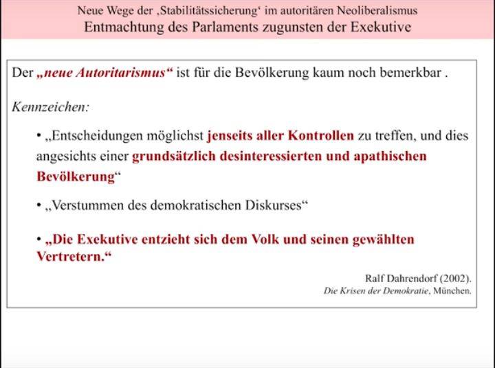 Stabilitätssicherung, Neoliberalismus, Ende der Demokratie,